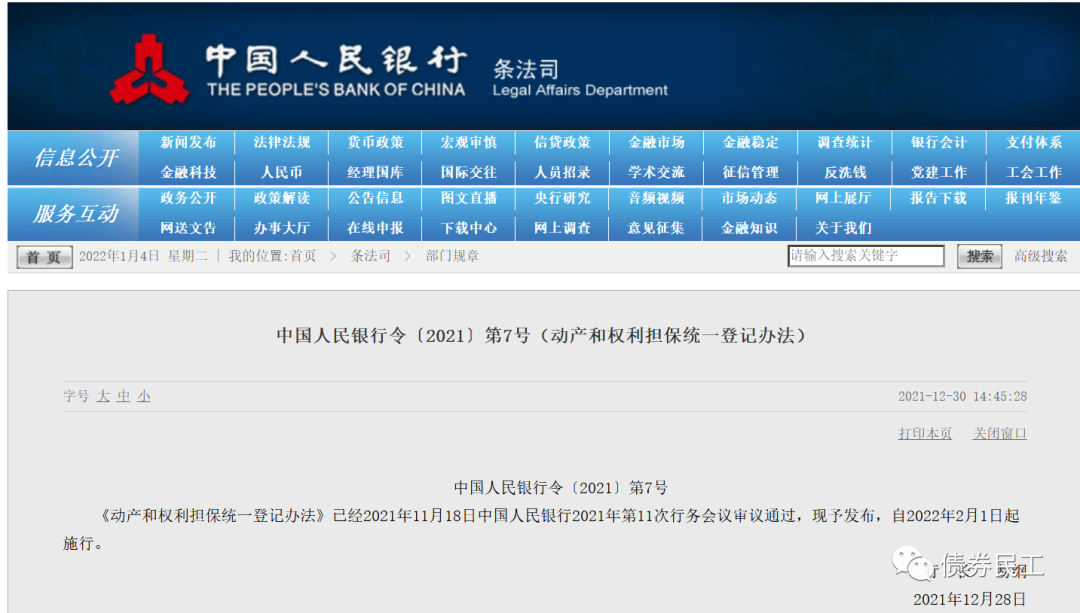 3、中國人民銀行于2021年12月30日公布了《動產和權利擔保統一登記辦法》,旨在落實國務院《關于實施動產和權利擔保統一登記的決定》的相關要求。《登記辦法》中將需要納入登記的范圍明確為應收賬款質押、存單質押、融資租賃、所有權保留等各種類型,相當于將所有非標融資的增信模式均納入了監管范圍。