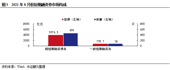 8月發(fā)行的中期票據(jù)中包括長(zhǎng)期限含權(quán)中期票據(jù)73只,發(fā)行規(guī)模602.5億元。8月發(fā)行的短期融資券中包括超短融(SCP)459只,發(fā)行規(guī)模3,976.5億元。