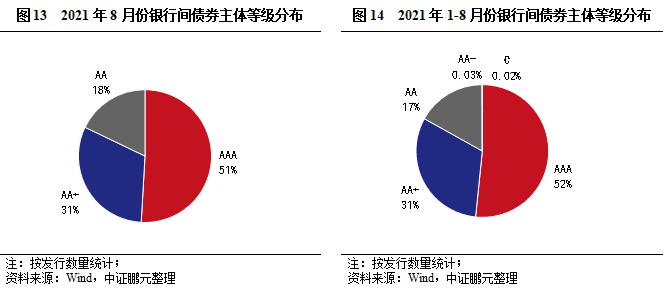 債券級(jí)別方面,8月銀行間市場(chǎng)債券以高級(jí)別為主,主體評(píng)級(jí)中樞略有下降。