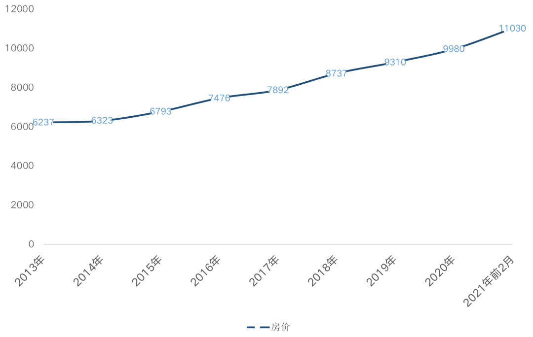 圖:2013年-2021年前2月全國(guó)房?jī)r(jià)均價(jià)走勢(shì)