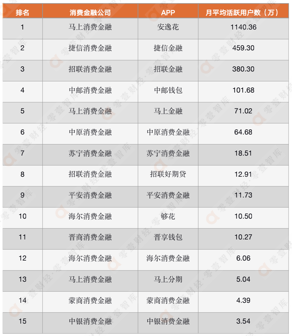 表 2:2021年前三季度消費金融APP月平均活躍用戶排名