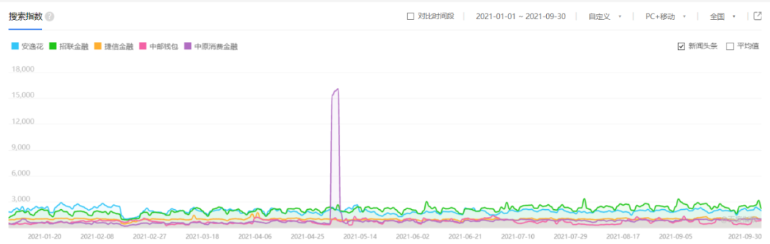 值得注意的是,中原消費金融APP搜索指數(shù)于今年5月大幅上漲,躍居第一,隨后回落。此前2021年2月底,中原消金在業(yè)內(nèi)率先推出 “7天無理由還款”,引發(fā)熱議。
