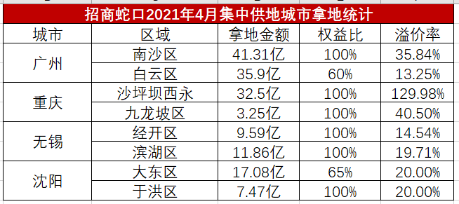 并且當月集中供地的5個城市,除了長春,招商蛇口在其他4個城市均有斬獲:
