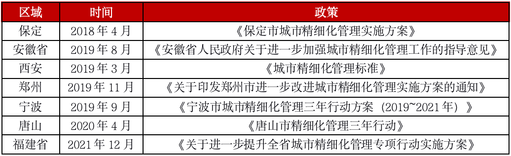 部分區(qū)域近年落實(shí)精細(xì)化管理政策