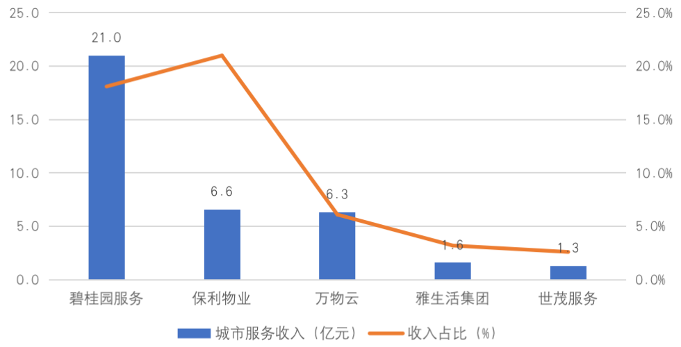 2021年上半年典型企業(yè)城市服務(wù)收入及占比