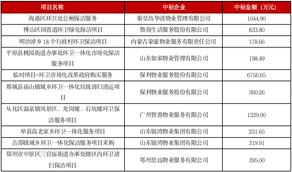 2021年部分物企獨(dú)立中標(biāo)環(huán)衛(wèi)項(xiàng)目情況