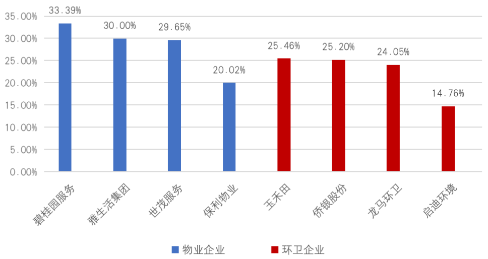 2021年上半年典型物企、環(huán)衛(wèi)企業(yè)毛利率水平(%)