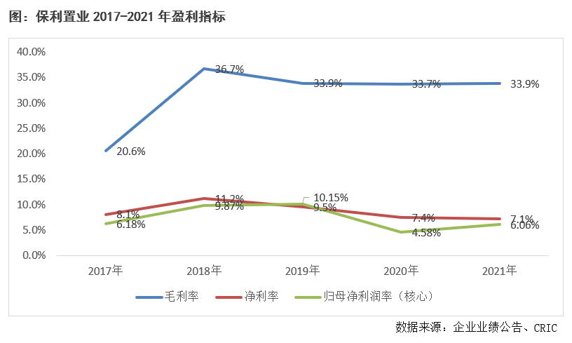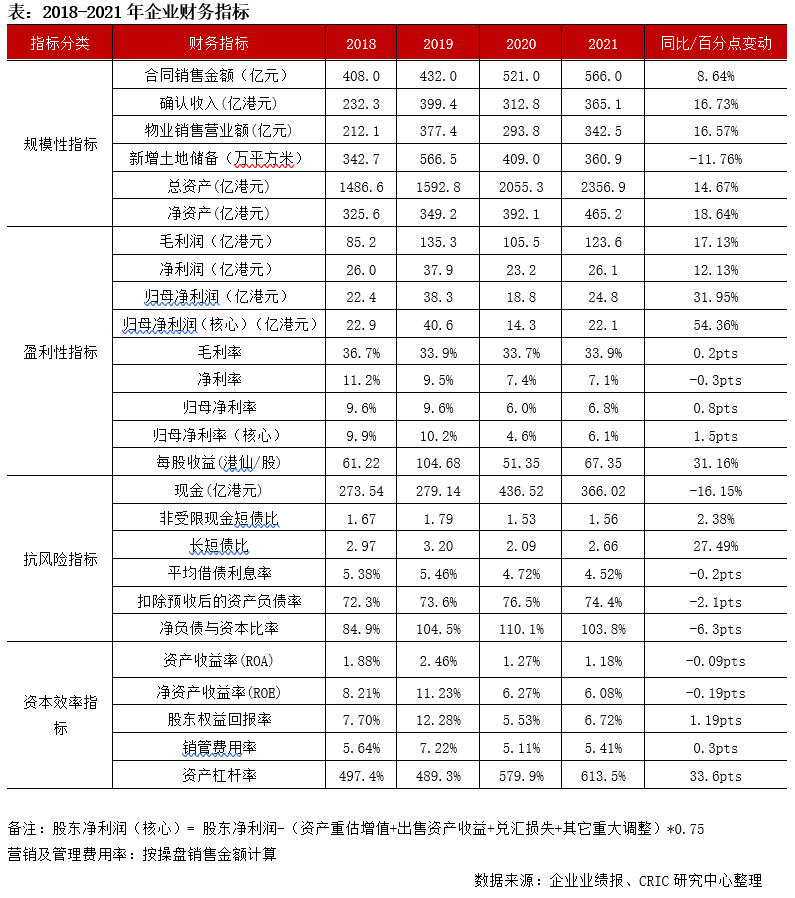 【營收未恢復(fù)疫情前水平,凈利率仍有改善空間】2021年?duì)I業(yè)收入穩(wěn)步增長,同比增加16.73%至356.13億港元,仍低于2019年的水平。從內(nèi)地營業(yè)收入來看,2021年保利置業(yè)內(nèi)地營業(yè)收入同比增長了12%,也較2019年的水平增長了8%,內(nèi)地結(jié)轉(zhuǎn)得到穩(wěn)定增長。凈利率7.1%,歸母核心凈利率6.1%,均低于行業(yè)平均,未來隨著低毛利率項(xiàng)目的逐步結(jié)轉(zhuǎn),其盈利率水平受到的壓力或?qū)⒏蟆?/p>