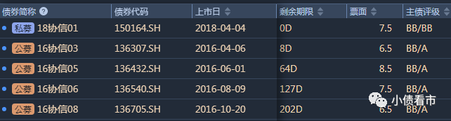 私募債“18協信01”發行于2018年,發行規模7.1億元,當前余額4.4億元,期限為3年,票息7.5%,將于今年3月9日到期。