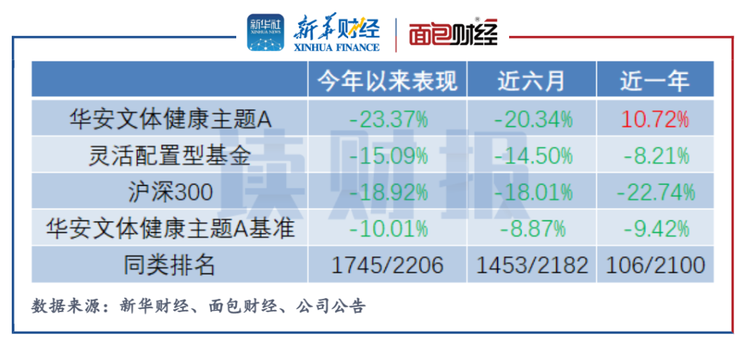 華安文體健康靈活配置混合(以下簡稱“華安文體健康”)堪稱2021年的“黑馬”基金,當年跑出69.78%的收益。然而,截至5月17日數據,基金年初以來凈值下跌23.37%,跑輸業績基準超10%,在同類排名中已處于末尾梯隊。