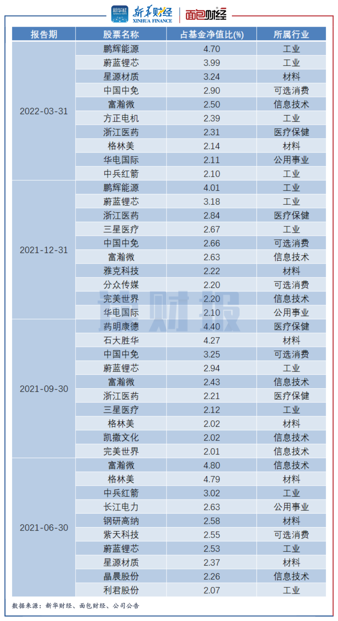 圖3:華安文體健康近一年十大重倉股