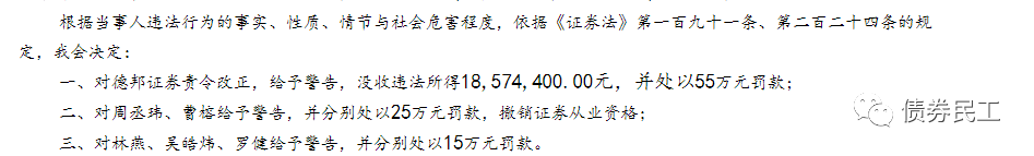 德邦證券是五洋建設四只公司債券的獨家主承銷商,曹某時任德邦證券債券承做部門負責人、項目承攬人。證監會于2019年11月11日對德邦證券下達了行政處罰決定(證監會2019[121]號),對德邦證券給予責令改正、給予警告、沒收違法所得和罰款的處罰,對相關負責人給予警告、罰款等處罰。