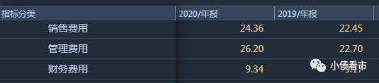 有息負債高企,榮盛發(fā)展融資成本上升,2019和2020年其財務費用支出均超9億元,另外銷售費用和管理費用也逐年增長,期間費用對公司利潤形成嚴重侵蝕。