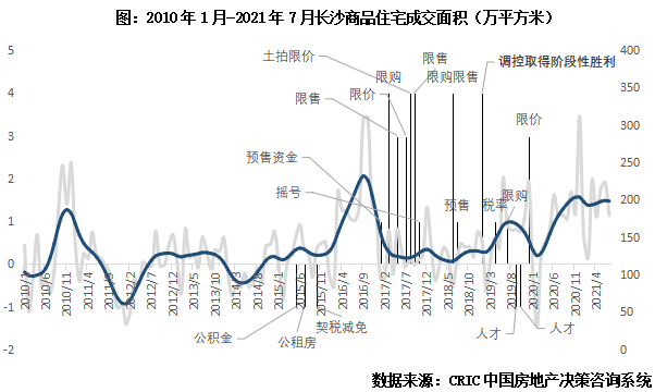 2015年以后長(zhǎng)沙著手制定出臺(tái)涉房調(diào)控政策,結(jié)合全市商品住宅成交變化來看,政策的收緊-放松對(duì)市場(chǎng)有立竿見影效果,尤其是2017年以后持續(xù)收緊的調(diào)控力度有維穩(wěn)樓市量?jī)r(jià)有顯著效果。