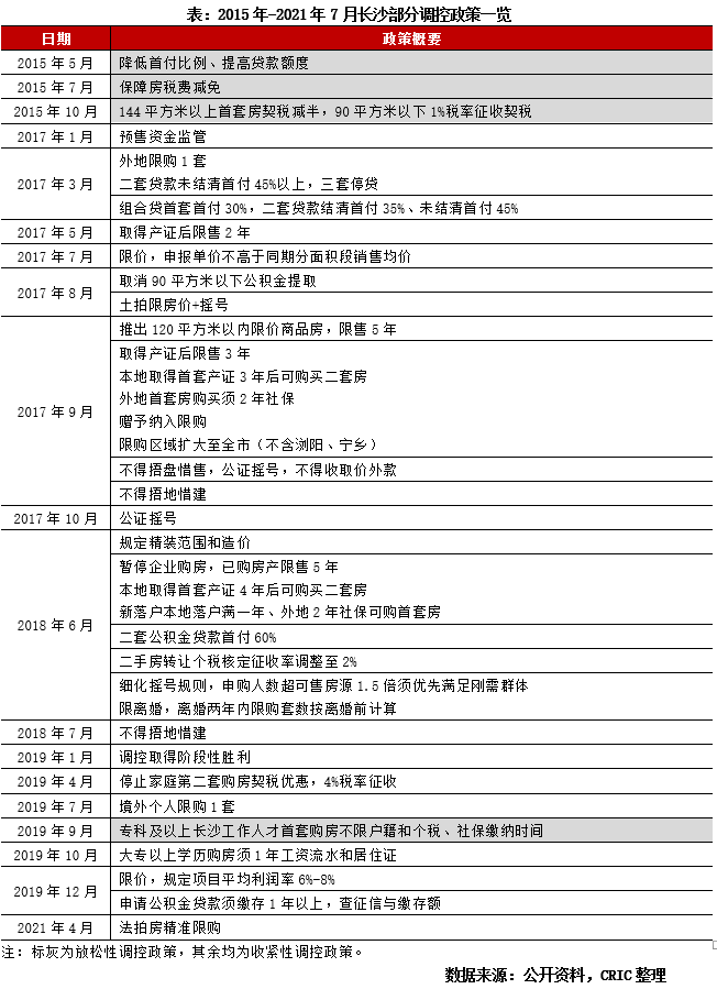 調(diào)控政策快速迭代,層層收緊。以限購政策為例,2017年3月首次提出外地戶口在蓉限購1套;后2017年9月加碼至外地戶口購買首套房須2年社保,限制長(zhǎng)沙本地戶口購買二套房須取得首套房產(chǎn)證3年后,并將限購區(qū)域擴(kuò)大至全市范圍。此外,2017年至2021年陸續(xù)將贈(zèng)予、離婚、境外個(gè)人、法拍房等納入限購范圍。