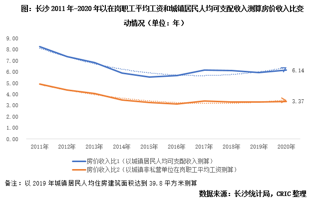 因長(zhǎng)沙整體房?jī)r(jià)在全國一二線城市中仍處“洼地”,以城鎮(zhèn)居民人均可支配收入測(cè)算的房?jī)r(jià)收入比僅為6.14年,在中部六省省會(huì)城市中處末位,城市經(jīng)濟(jì)發(fā)展面好,房?jī)r(jià)低,買房壓力小,剛需仍是驅(qū)動(dòng)城市成交規(guī)模增長(zhǎng)的重要力量,而對(duì)于本地公務(wù)員等高收入群體而言,買房換房更是毫無壓力,以在崗職工平均工資測(cè)算的房?jī)r(jià)收入比僅為3.37年,此外,以城鎮(zhèn)居民人均可支配收入測(cè)算的房?jī)r(jià)收入比均有穩(wěn)步下行并持穩(wěn)的趨勢(shì),由此可見,居民購買力尚處于較為充沛的區(qū)間。