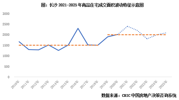 依據(jù)上文對(duì)長(zhǎng)沙長(zhǎng)周期預(yù)判,2010-2018年整體成交規(guī)模低位持穩(wěn),成交中樞處于1500萬平方米左右波動(dòng),自2019年以來,我們認(rèn)為進(jìn)入了新的爬升周期,2021年預(yù)期會(huì)達(dá)到突破新高,逼近2500萬平方米,而后或?qū)⒂瓉硇》卣{(diào),依據(jù)一輪周期基本在8-10年的推論,2019-2025年或?qū)⑻幱谀昃山灰?guī)模2000萬平方米這一中樞高位持穩(wěn),并不會(huì)出現(xiàn)明顯的“大升大降”。