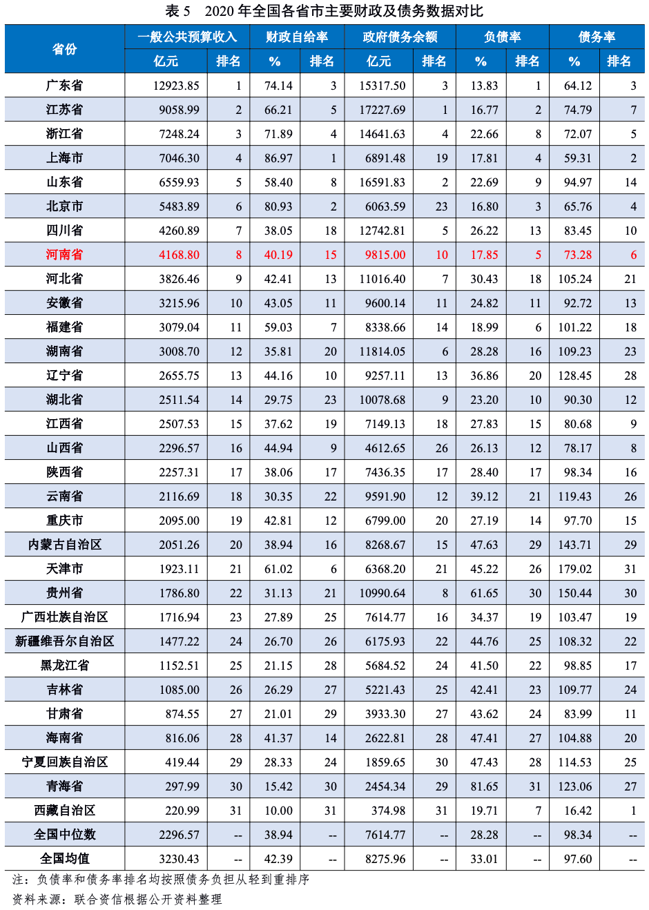 2.河南省財政實力及債務情況
