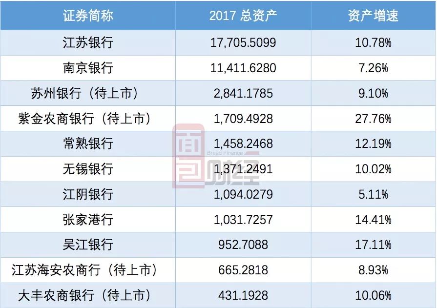 在已上市的銀行中,資產(chǎn)規(guī)模最小的為吳江銀行,截至2017年底總資產(chǎn)達(dá)952.71億元。如果剩余三家江蘇省內(nèi)銀行能成功過會(huì)上市,大豐農(nóng)商行或?qū)?chuàng)A股最迷你上市銀行記錄。