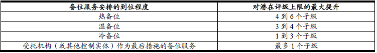 表一   合格“備位服務”下潛在評級上限的最大提升