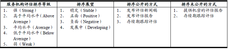 表二   標普的“服務機構”評估排序