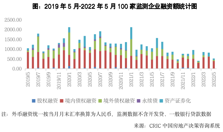 單月融資規模是2019年以來第三低,政府多次表態支持房企融資(2022年5月)