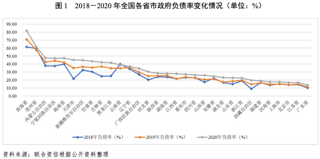 2018-2020年,山西省政府債務規模持續增長,2020年底政府債務規模在全國排名中下游。2018-2020年,山西省政府負債率和政府債務率均呈上升趨勢,負債率分別為17.62%、20.63%和26.13%,政府債務率分別為59.77%、64.08%和78.17%;按照債務負擔輕重和償債能力強弱排序,2020年山西省政府負債率和政府債務率在全國排名中均處于中上游,整體債務負擔較輕,償債能力較強。